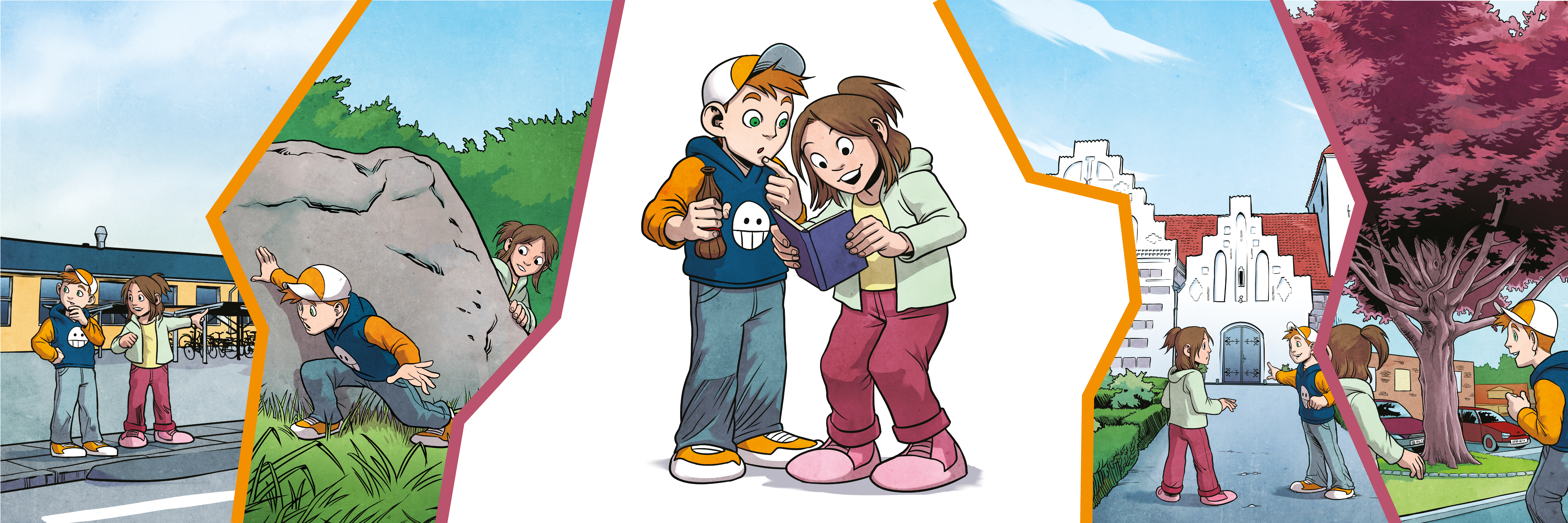 Spilbogen opleves bedst, når I har den fysiske bog i hænderne, hvor I kan bladre frem og tilbage. Spilbogen kan dog også tilgås digitalt her: Med Noah og Sofia på eventyr i Søndersø.
